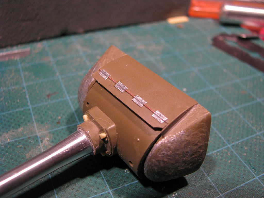 Доработки башни включили в себя установку точёного ствола от «Jordi Rubio», имитацию петель отбойника над маской, установку новых болтов крепления на маске, имитацию сварных швов, новые поручни, изготовленные из проволоки, крышки перископов. А также замки люка заряжающего, крепление для визира башенного пулемёта и рёбра жесткости элемента крепления люка заряжающего (за информацию по трём последним пунктам спасибо пользователям «ЖЖ» Foogass и Hetzer).