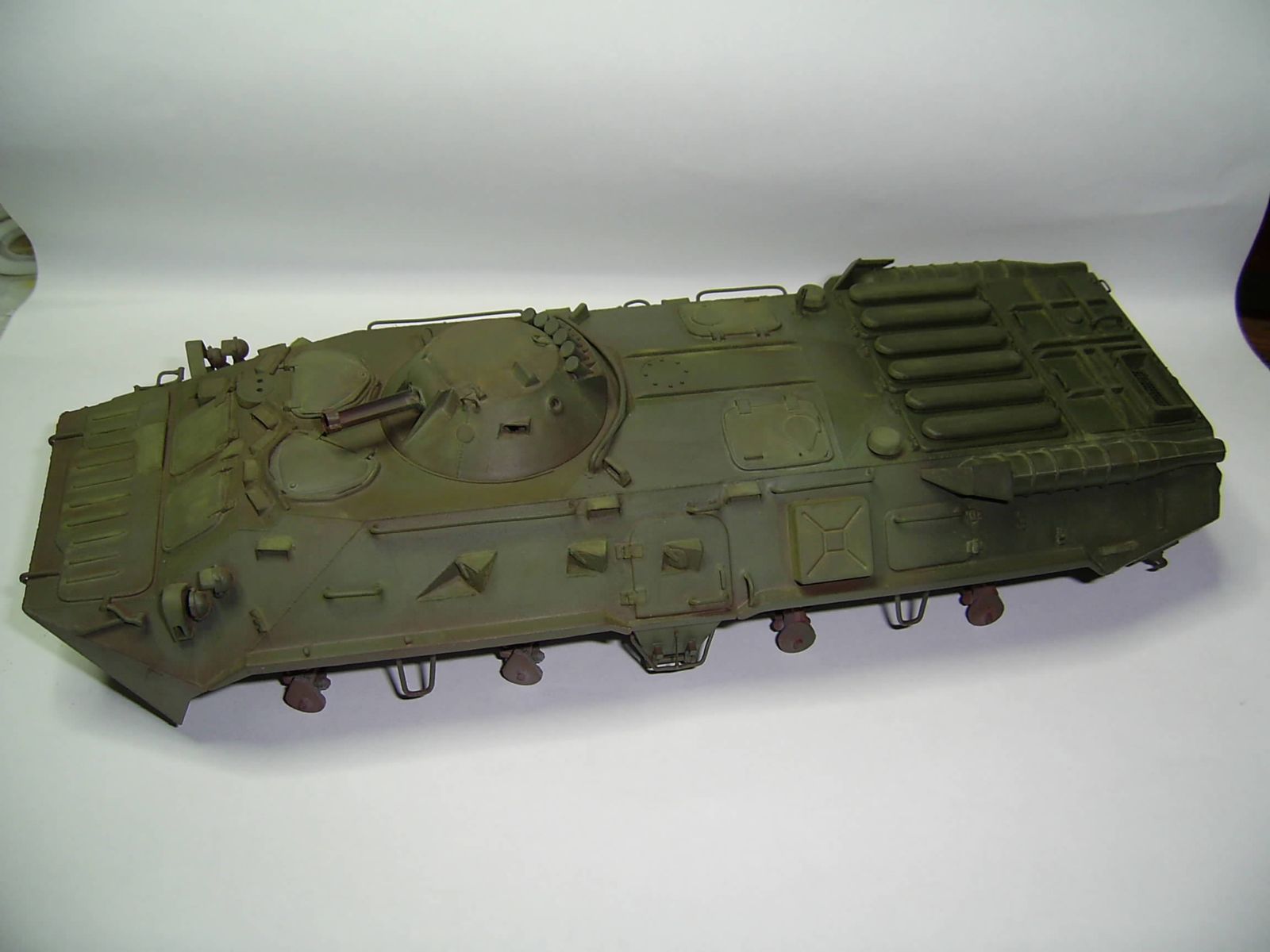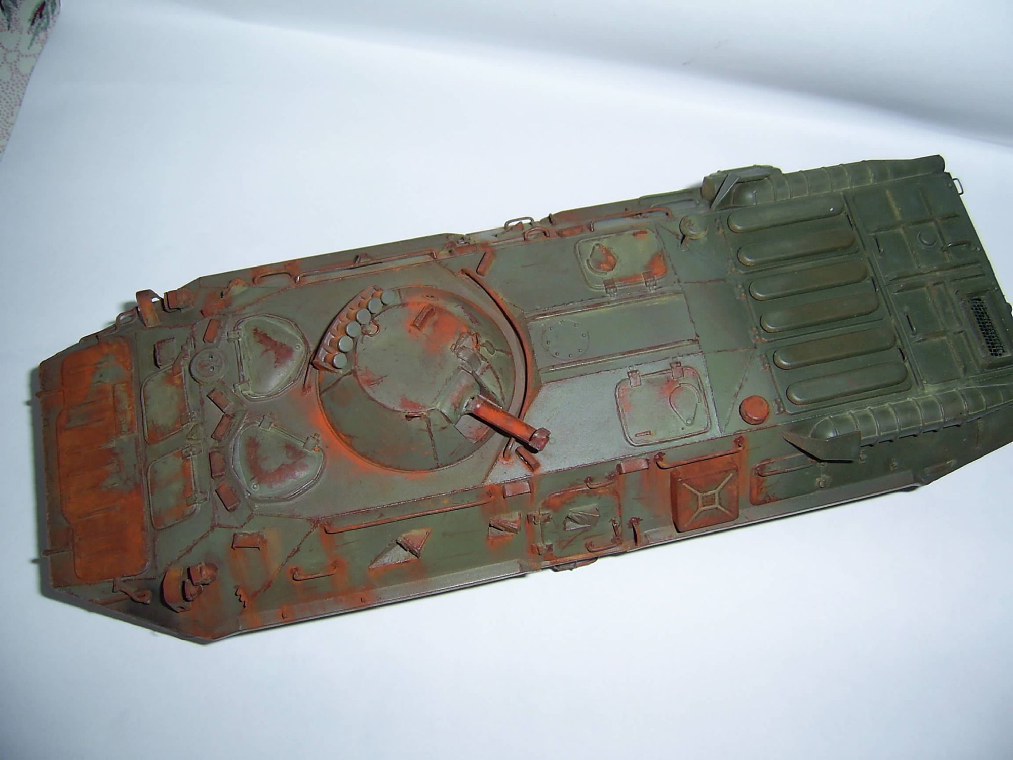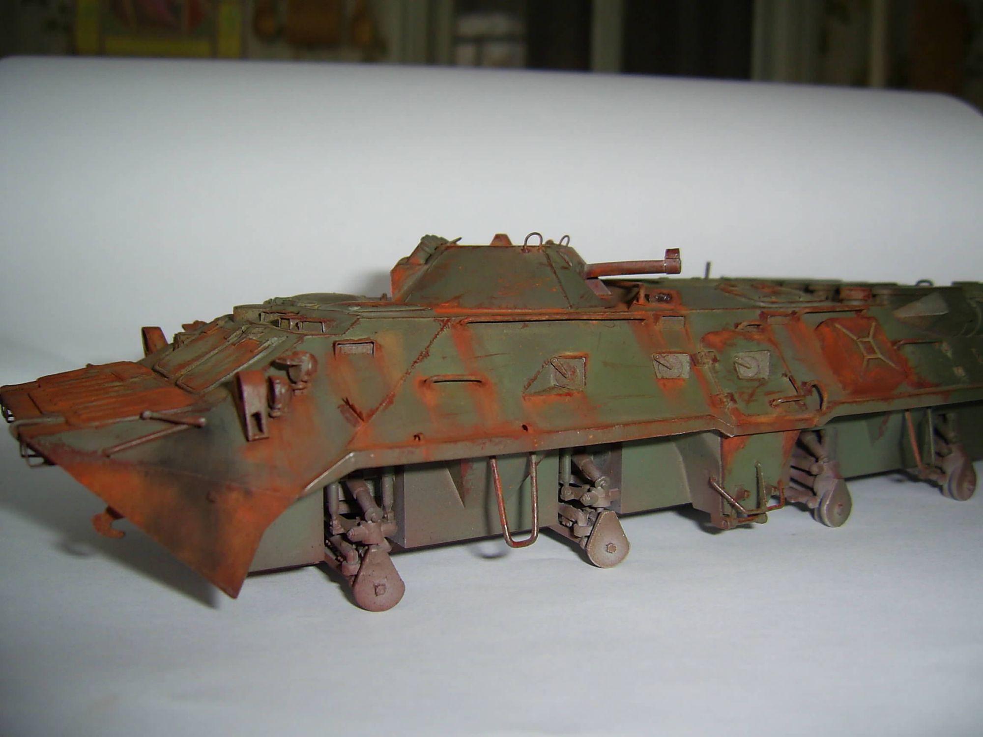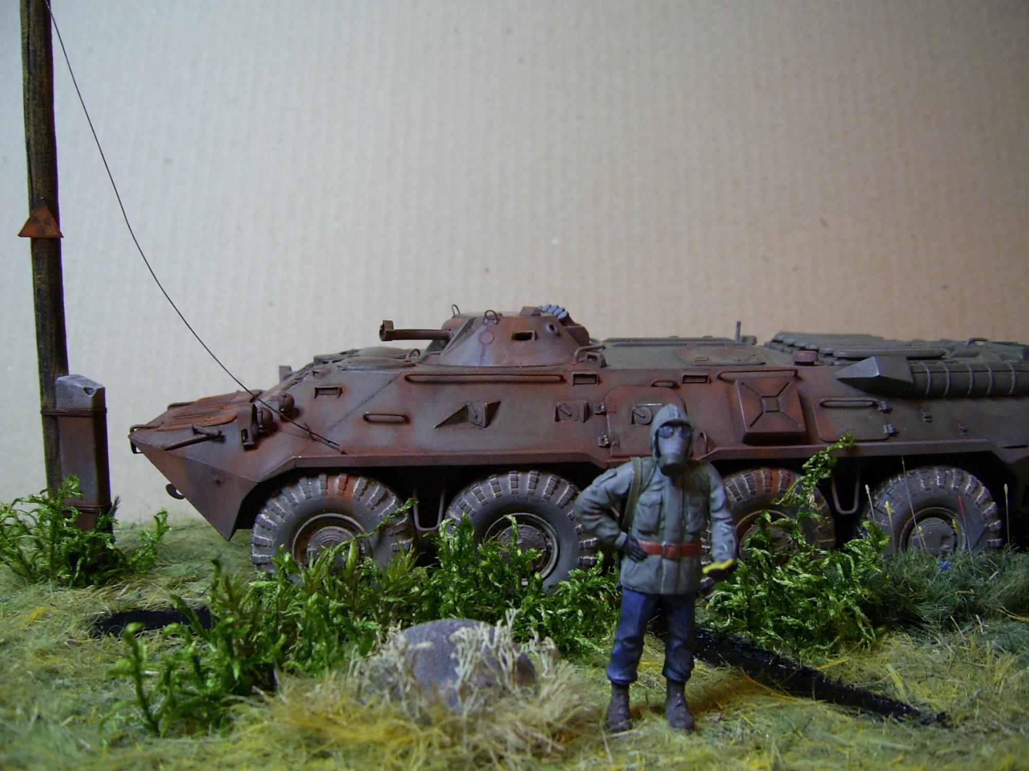 Тут была задумка именно на контраст частей поржавевшего корпуса БТР и практически нового и чистого. Это меня вдохновили т.н. "двойные" диорамы.