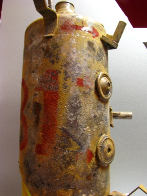 Бочки- стыки и "кольца"- рёбра жёсткости оттонируй. И Бочки- это всё таки метал- должна быть ржавчина.
