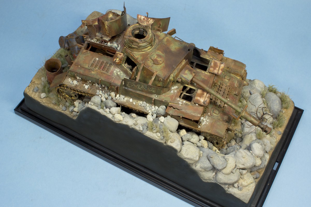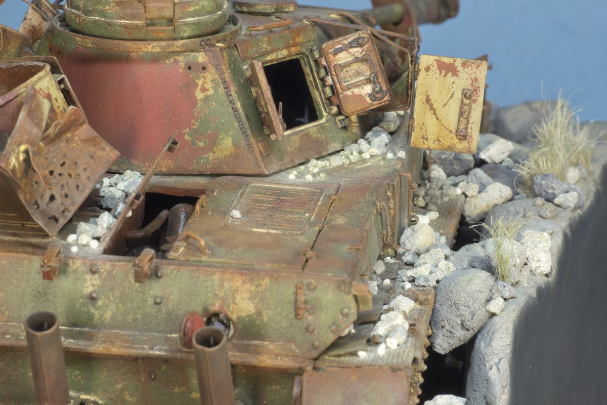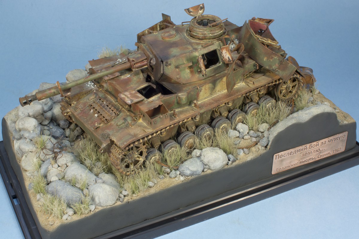 Точно не китайца и точно не старого солдата (немца, я правильно понял?). Танк делался на 70-е годы, когда на нем еще была зеленая окраска. А туристы там появились относительно недавно - это ведь до сих пор милитаризованная зона. Там и минные поля есть и современные укрепрайоны и войска... Т.е. китаец - это 2000-е, а сейчас эти танки куда более ржавые. Из окраски остался в основном грунт. Это про китайца. Про немца - еще более спорно появление солдата вермахта именно в Израиле с целью посетить танк на котором воевал. Да и старые они нынче – как и наши. Если и делать фигурку - то военный корреспондент или израильские солдаты, проезжавшие мимо и подошедшие посмотреть на диковинку.