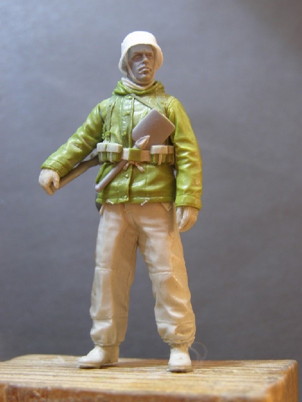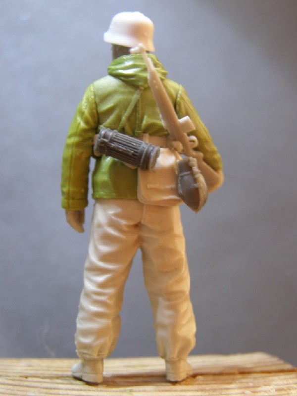 У фигуры будут в комплекте пара гранат, котелок, штык-нож. Подсумки на мастер-модели были заменены под G43