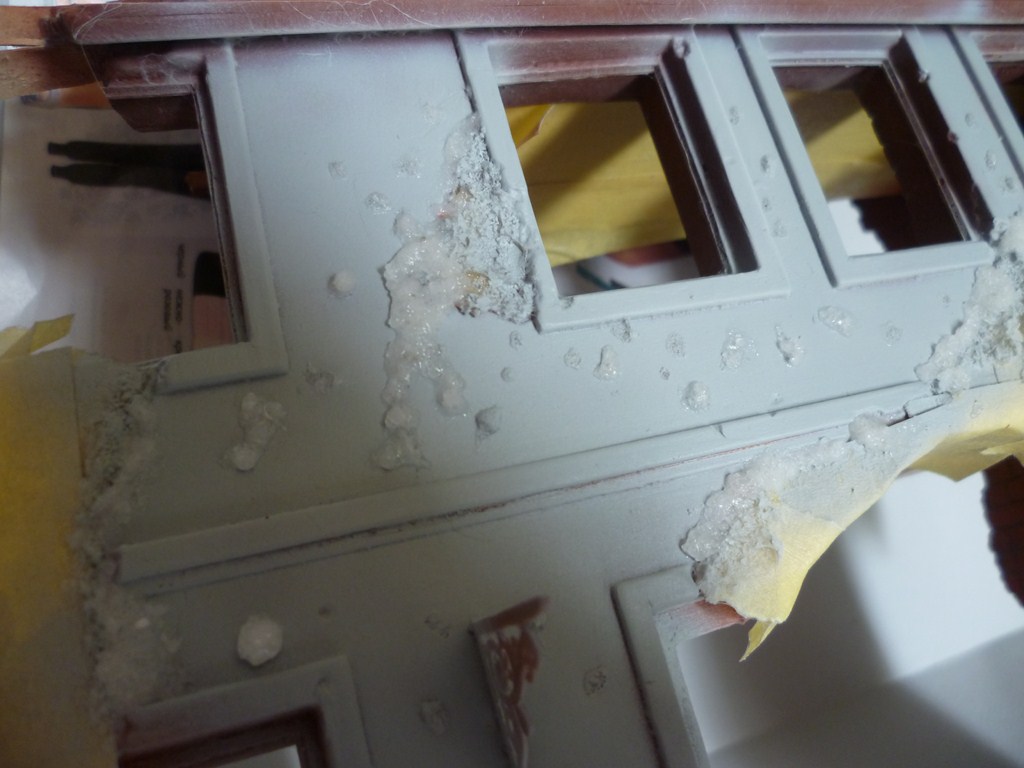 сделал потолок комнаты,имитация сена сделана из пакли,поверх дранки позже нанесу шпатлевку и пооткалываю в некоторых местах,в дом пока вставил для примерки,приклеивать буду позже
