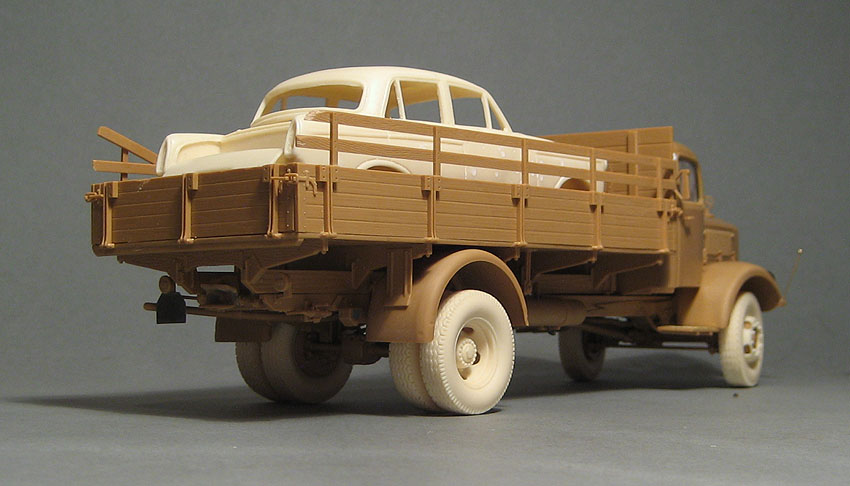 Володя, грузовик здорово выглядит! Легковушка в кузове очень оживляет модель, делает её пропорциональнее что-ли, более уравновешенной. Действительно выглядит очень эффектно! Давно уж обратил внимание на фото этого грузовика собранного другими моделистами, что и с тентом и с пустым открытым кузовом этот грузовик выглядит скучно, огромный диспропорциональный кузов сзади разжижает и делает очень скучной модель.
