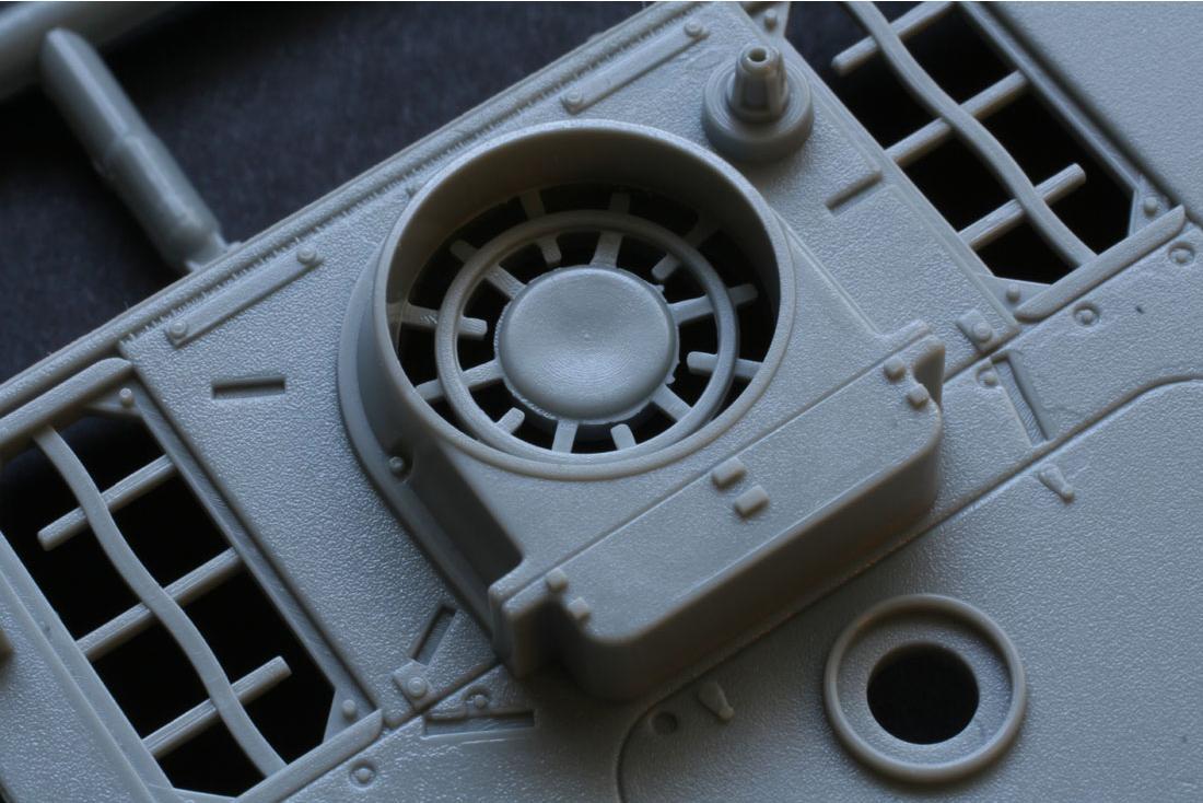 2. Дополнительный вентилятор двигательного отсека отлит вместе с надмоторной плитой, та же история и с командирской башенкой,