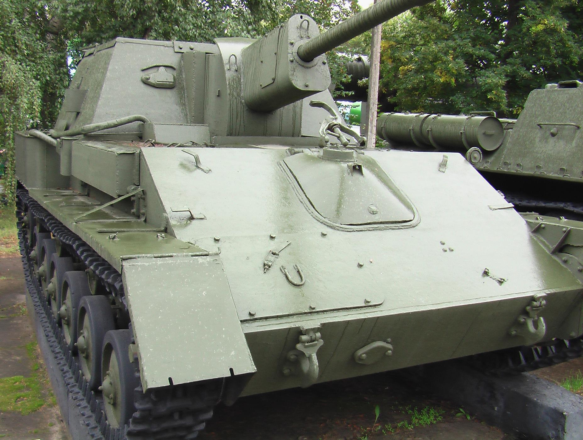 Национальный военный музей, Бухарест, Румыния.На этой машине видно, что поддерживающие угольники крепятся к машине сваркой а к полке - на 4(четыре)болта и болты берутся по парно,причем центр угольника получается разряженным.Чего не скажешь о "косынке",полка к косынке крепится уже на 5(пять)болтов,которые равноудаленны друг от друга.А сама "косынка" уже крепитя к самоходу не сваркой,а под болт.То что плки наборные на этой машине я не вижу.