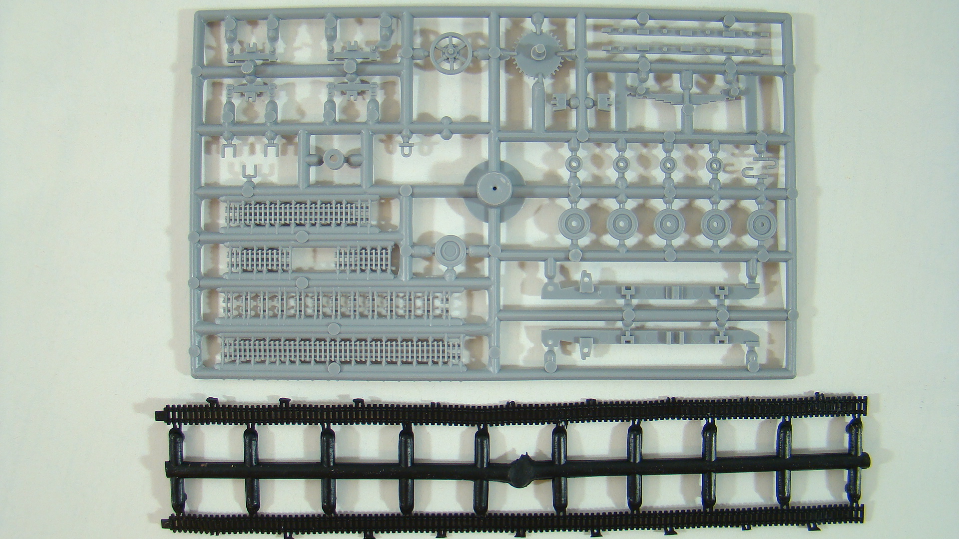 Дальше для разогрева отделил и обточил все детали для сборки одной стороны ходовой, как по мне самые замыленные литники,большие катки имели небольшое смещение,маленькие облой,остальные детали хоть и прошлось практически все затачивать не так уж и страшны.На это ушло 40 минут