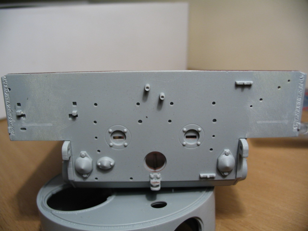 Смотровой прибор мехвода установлен, сделаны болты которыми крепилась маска курсового пулемёта, поручни и крепления под мешки с патронами.