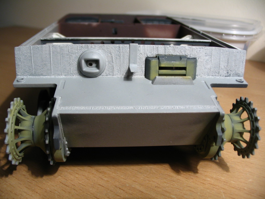 Циммерит предпочитаю делать сам, использую Хамброловскую шпаклёвку и Тамиевские гребёнки. Для корпуса и маски использованы гребёнки с шагом 0,5, для башни 0,7.