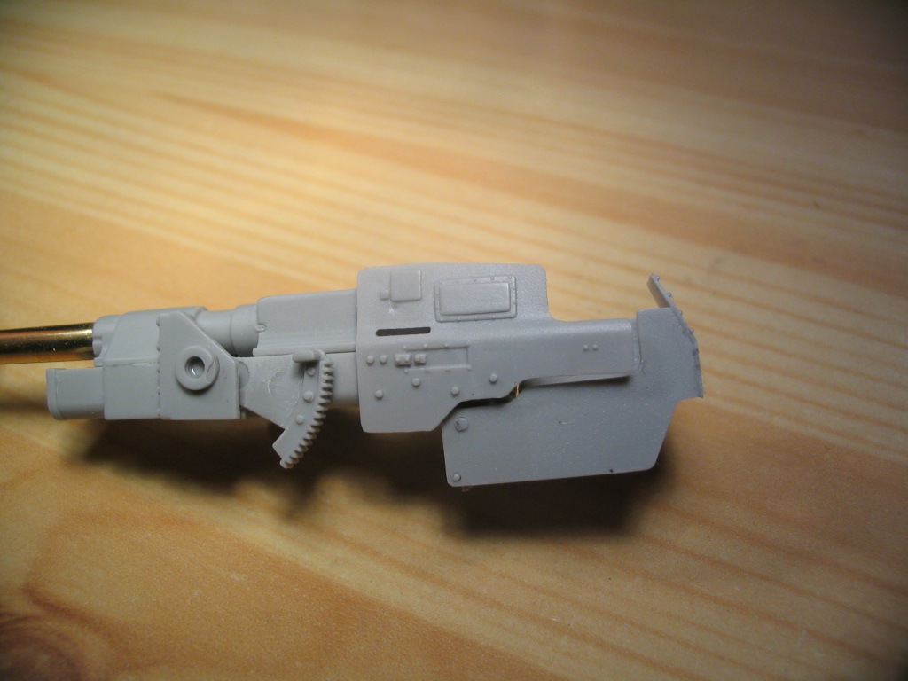 Задняя стенка после зачистки и вотановления имитации литья выглядит ужасно, нужно подкрашивать не испортив казённик орудия.