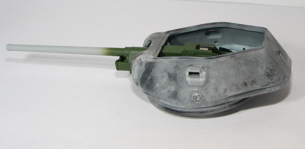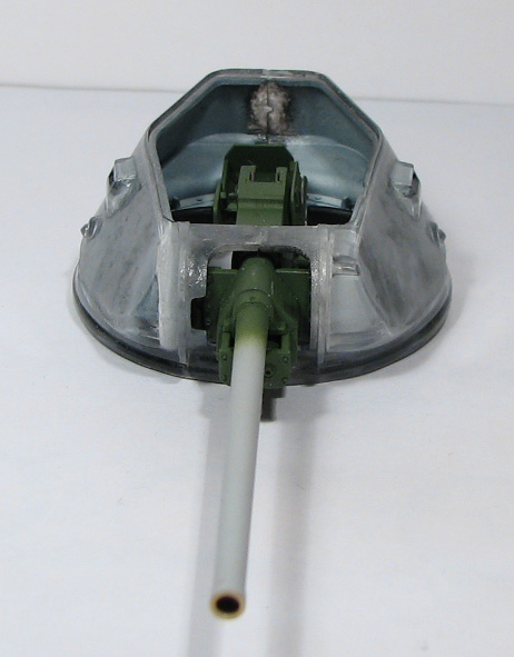Членение башни мне не понравилось, Драгон это сделал лучше. Стыкуется не очень хорошо к тому же орудие нужно будет вставить во внутрь при склейкe половинок, так что затем заделывать швы, шпаклевать и снова красить нужно когда крашенный ствол уже внутри.