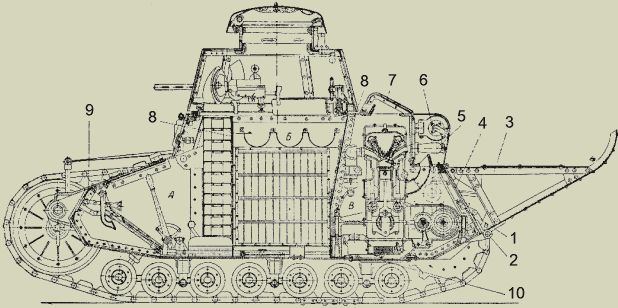 Немногие затеменные фото мало чему помогают, но есть еще графика из техописания танка (издание конца 20-х). В СССР такие "инструкции по эксплуатации" рисовались по фотографиям и очень качественно - подтвердят военспецы. Так вот графика - в некоторых местах соответсвует как раз рисункам Петровского (который обмерял и облазил реальные доступные машины для своих иллюстраций, к слову), а не Свирину - люки мехвода и нос танка, скажем.