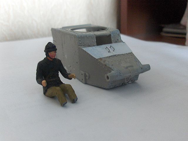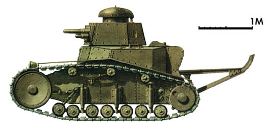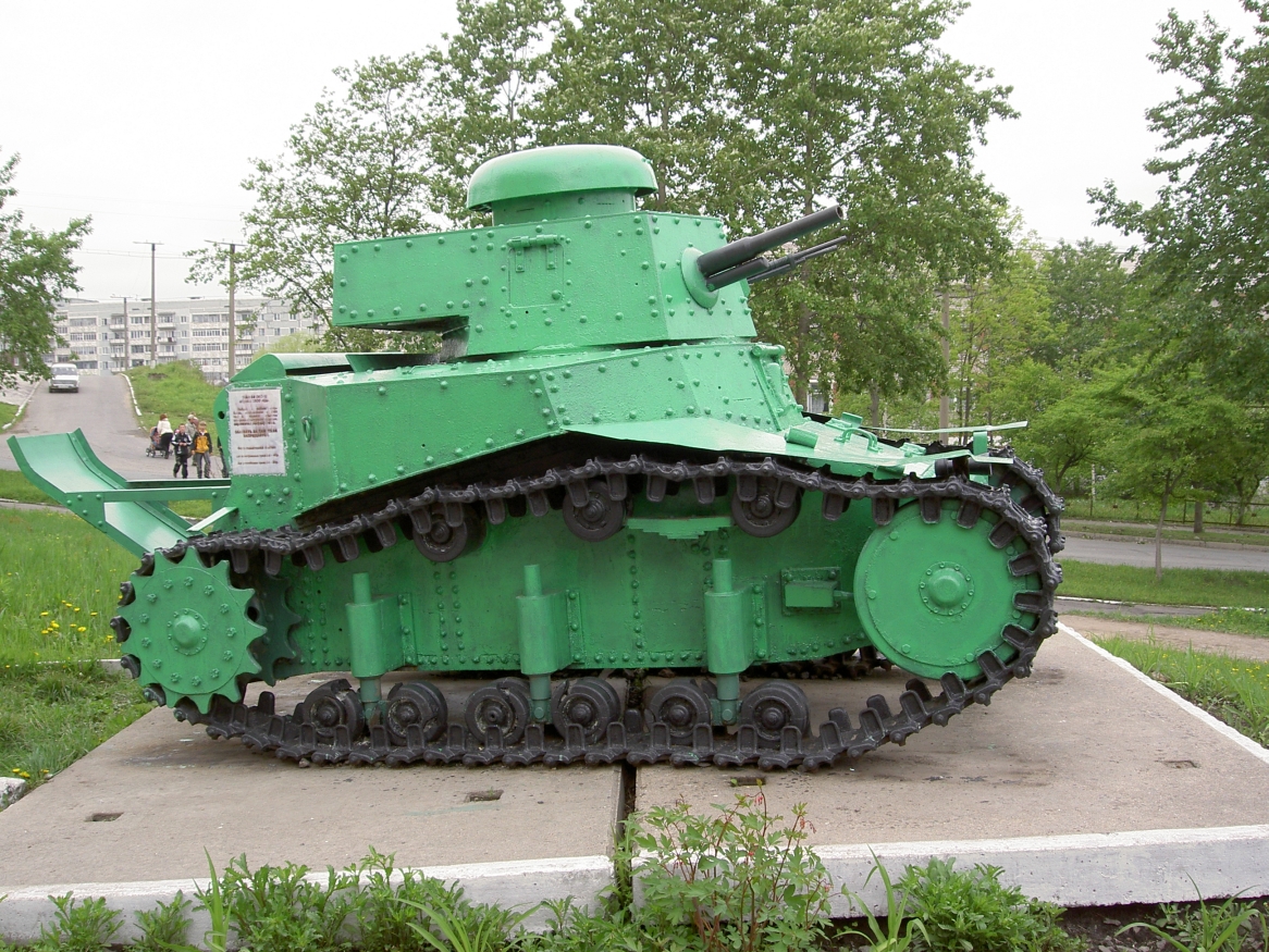 Думаю, историю этого танка желающие легко найдут в сети. Так что повторять ее не буду. Скажу только, что было как минимум три версии машины с разным вооружением, ходовой и башнями. Третья - модернизация середины 30-х, с 45 мм пушкой, в таком виде несколько (десятков?) машин даже повоевали летом 1941. А по размерам, (без хвоста), танк ростом с выского мужчину и габаритами меньше японской малолитражки.