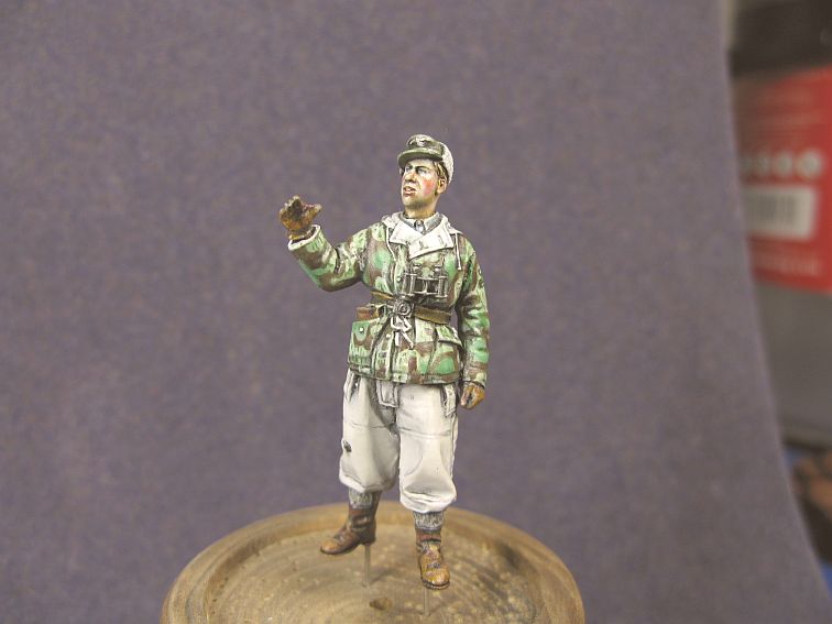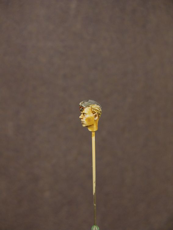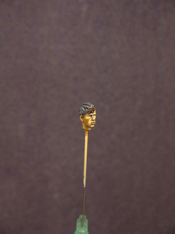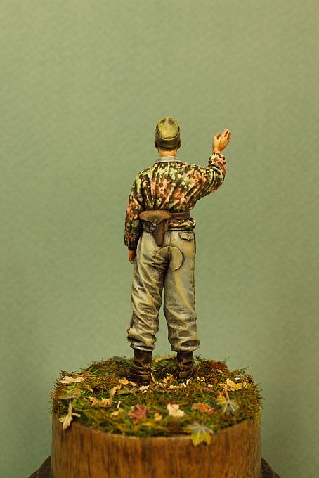 В качестве грунта XF-1(эмаль),далее акрилом из аэрограф перпендикулярно складкам,оставляя затемнения,основной цвет.Затем Валеджио кистью.в конце масло.