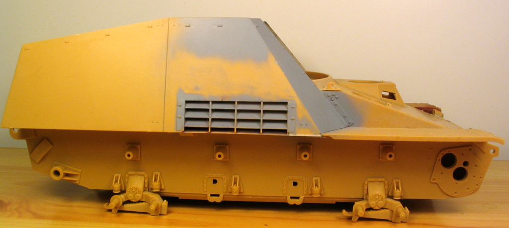 4.Сам корпус тоже имеет маcштабную толщину, например толщина лобового листа 0,8мм. Плюс корпус в районе двигателя сделан как на настоящей самоходки, у Драгона же если посмотрет то сквозь воздухозаборники будет видно насквозь. У AFV Club там будет ещё стенка с воздуховодом и вентиляторы. Противопожарная переборка.