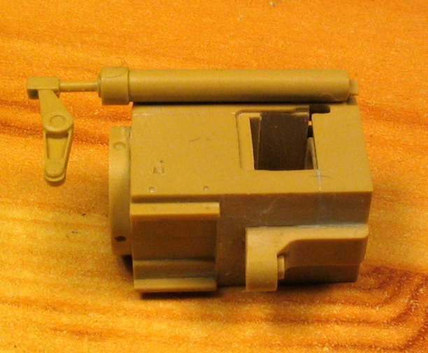 3. Орудие поднимается верх и вниз, а также двигается влево и вправо, причем устанавливается оно очень легко, как Тамиевские катки на втулке, что позволает собрать и окрасить орудие отдельно, а корпус полностью собрать и окрасит тоже отдельно.