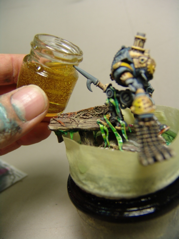 Появилась идея создать выходящего из воды персонажа. Фигура из белого металла была переделана из статичной в вышагивающего из воды на пирс, я его назвал Старина Луиджи. Основание полостю слеплена с нуля, набросал базовые цвета. Но разговор не об этом, думаю что эксперименты с изготовлением воды и споры вокруг этой темы интересны нетолько мне, и потому предлагаю новую тему для обсуждения. Если кому-то поможет этот пост будет очень приятно