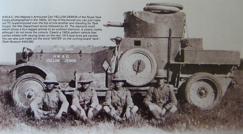 Ну, в ПМВ они участвовали именно на спицованных колесах. Поищите в Гугле видео по rolls royce armoured car - есть ролик и со съемками ПМВ (ссылку не найду), и 20-х. К сожалению, до ВМВ он не доходит. У самых ранних машин малый ящик на заднем крыле мог быть один, справа по ходу. Мои ящики, колеса и резина появились, вероятно, в конце 30-х (сужу по некоторым фото) - когда машины частью еще были просто хаки.