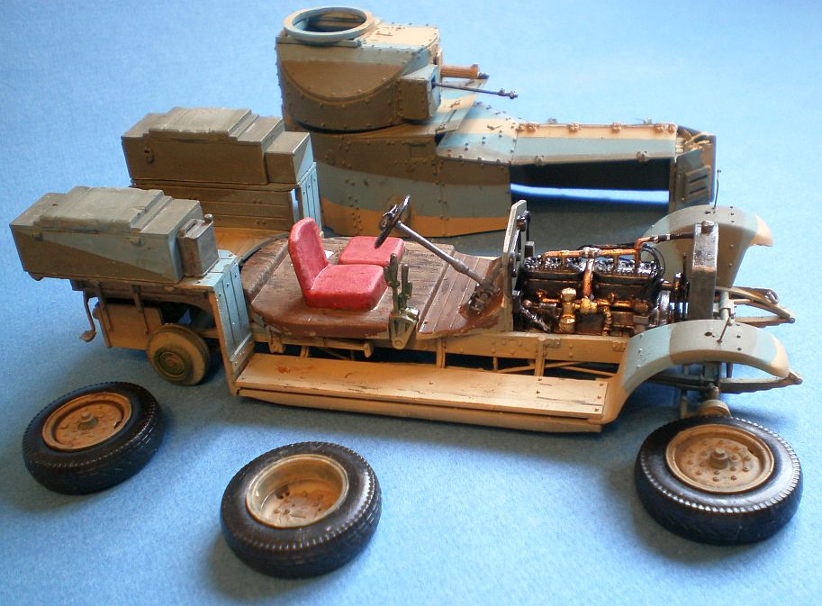 Броневики, созданные во время Первой мировой, дожили аж до 1950-х. Очень крепкое шасси Роллс-Ройса, отличный 6-цилиндровый мотор (в котором много цветных металлов - нужных пластиков тогда не знали), нормальная бронезащита для того времени и тщательность изготовления. Эти машины часто дорабатывали, переделывали, некоторые колониальные ко 2МВ переставили на шасси "Фордзон" - в общем, вариантов есть множество, ищите свой.