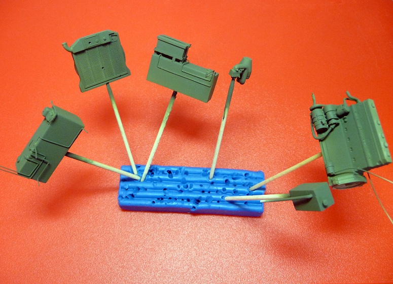 Подготовил к установке проводку и патрубки системы охлаждения, а затем все внутренности загрунтовал при помощи грунтовки Vallejo Game Color White Primer 72002.