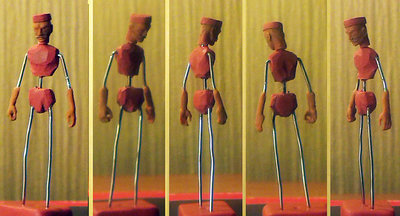 Ещё у вас скелетик сразу весь облеплен, но я как можно дольше оставляю не облепленным район поясницы. Очень легко ошибиться с точным выставлением позы и при виде в профиль фигурка может казаться дубовой или излишне наклоненной вперед или назад. Чуть изменить наклон грудной клетки - и можно эти дефекты поправить.