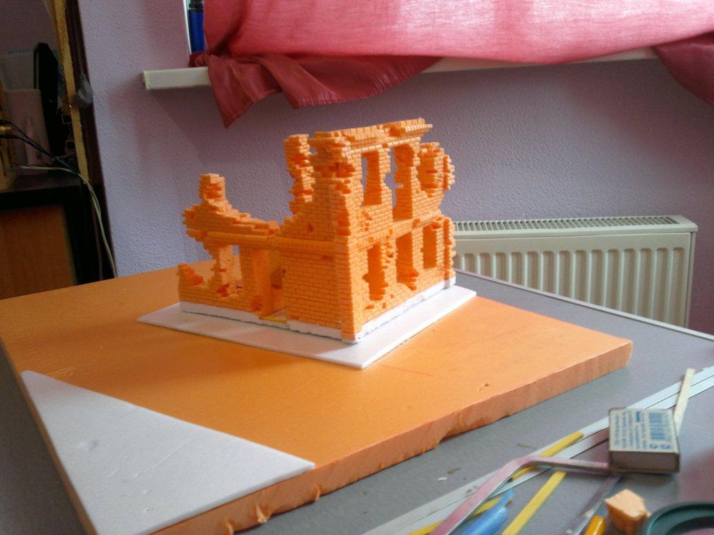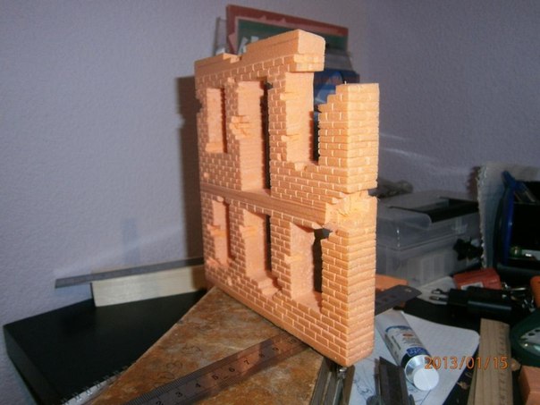 Развалины получились шикарно. Чтоб не было потом мучительно больно и обидно - пожалуйста, поставьте рядом любого солдатика из будущей композиции - пока дело слишком далеко не зашло, прикинем вместе, стоило ли от масштаба отступать ? А то мысленно переводя, мне не кирпичи по размеру, а полноценные такие пеноблоки видятся
