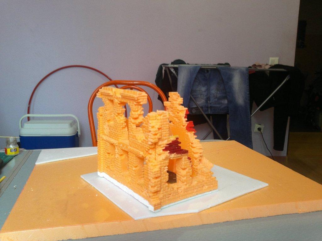 Очень впечатляюще. А можно ссылочку на то, как такие развалины из полистирола вырезать? А то надо. Спасибо.