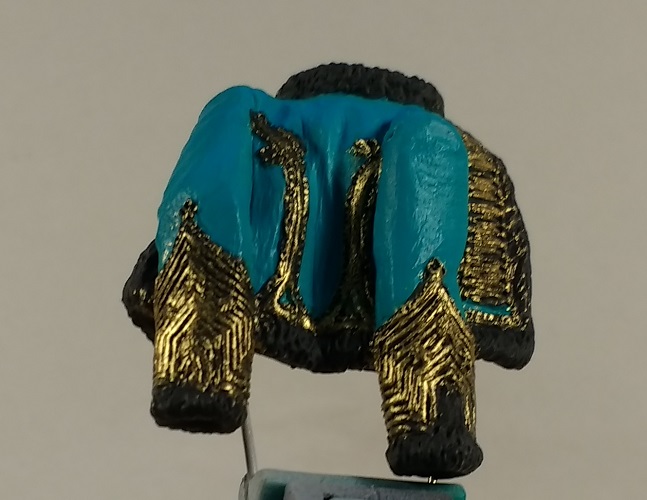 В выходные чуток продвинулся в окраске. Нанес базовый окрас, и основу золота сухой кистью. В паре мест заехал куда не надо, буду корректировать. Вечером начну работать над лицом, смывать просветы между золотыми деталями, прорисовывать детали....