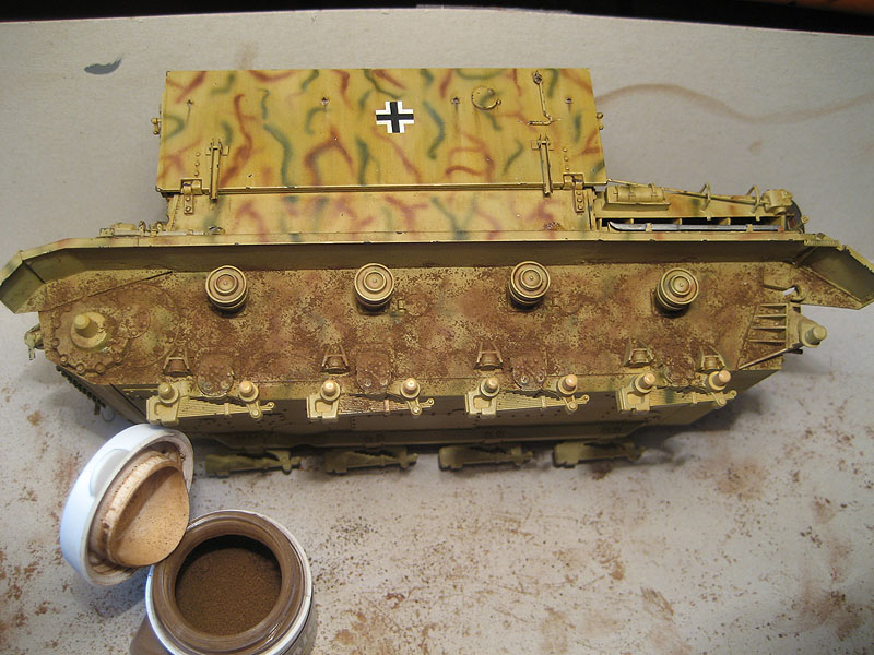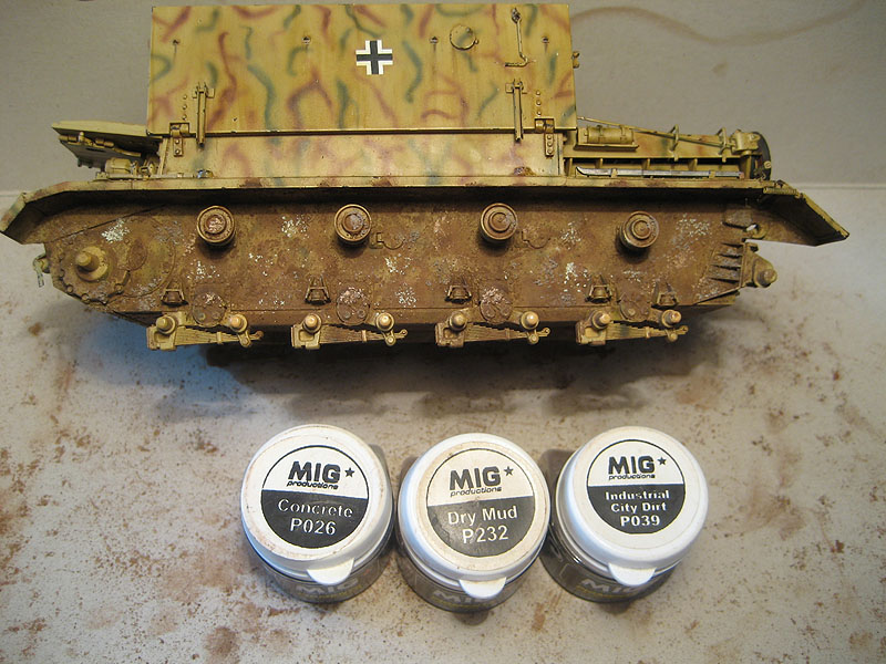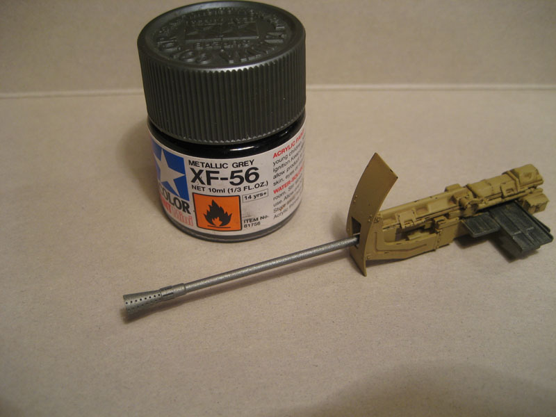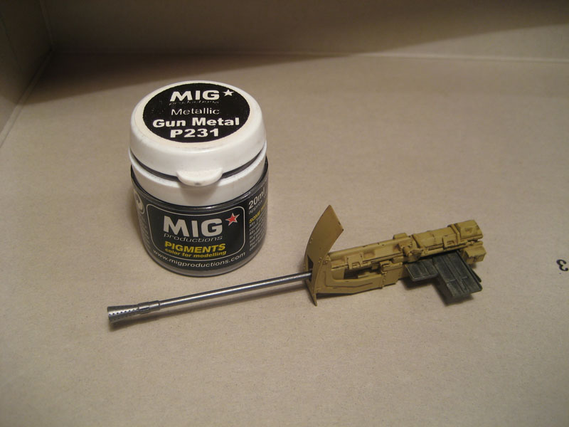 Ствол орудия у Мебелей никогда не красился, соответсвенно я покрасил его сначала тамиевским металликом XF-56, а потом обработал миговским пигментом Gun Metal.
