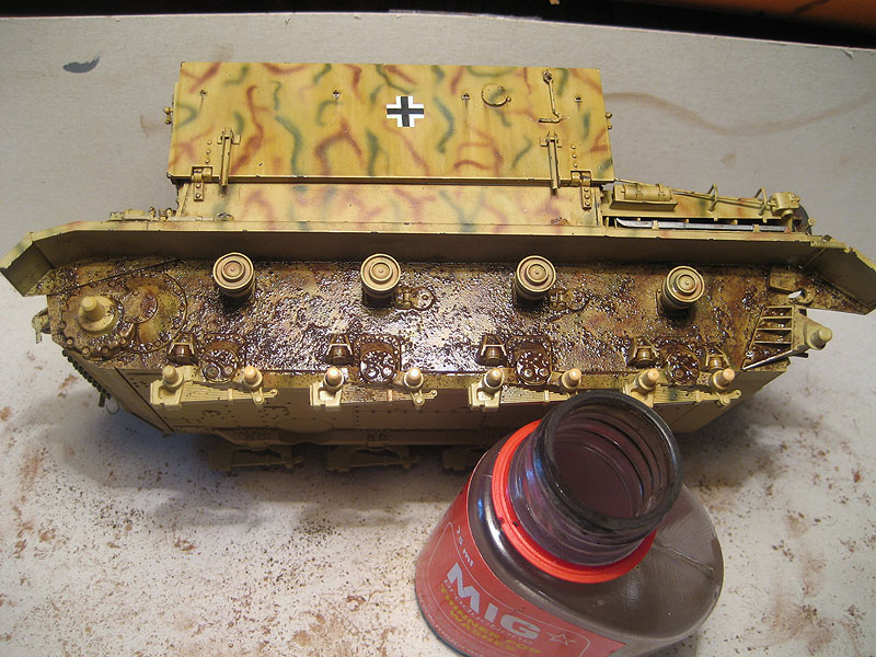 Добавлю, что миговские смывки и самодельные смывки на масле - несколько разные вещи. Миговская смывка - по сути пигмент разведнный растворителем, т.е. масла в ней нет. Соответственно после высыхания такая смывка имеет глубокую матовость, а швы, выделенные самодельной смывкой, приготовленной из масла могут быть глянцевыми.