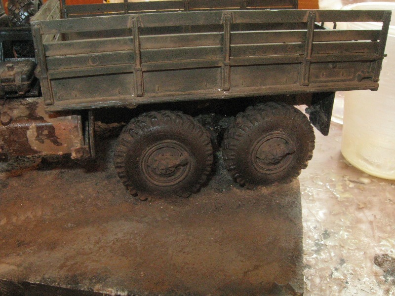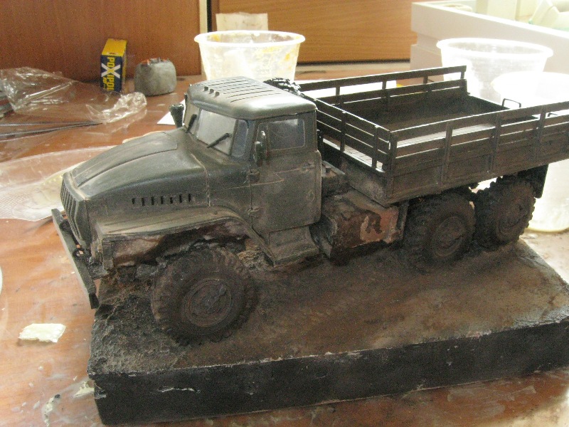 Анатолий,если Урал от Алангера,то могу сообщить,что у меня резиновые колеса пластиковые диски не разъели,но в том месте где они соприкасаются с поверхностью,т.е. опорные точки,резина как бы оплавилась и стала прилипать к поверхности и ничем эту заразу исправить не могу: и сухими пигментами мазал и черной матовой Тамией красил...и нифига!Есть возможность-ищите смолу(то ли уже есть,то ли скоро выйти должна),сам ищу