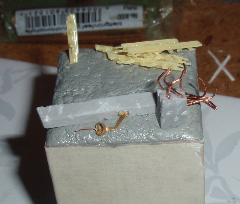 Эпоксилин, литники от смоляных фигурок, проволока, заполнитель от 3D моделей (желтый), травление miniarm'овское. Вообщем, всякий хлам! Также буду юзать фотик жены. Может победЮ проблему с качеством фото...