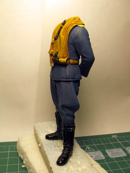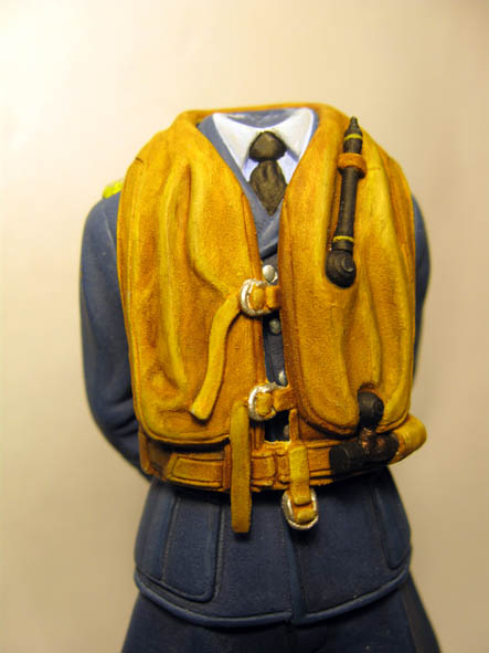 По высланной ссылке Константина- видно, что баллон сжатого газа, для накачивания жилета - был не чёрного цвета, а имел бронзовый цвет. Так и сделал, добавил ещё сверху бронзы чёрное тонирование.