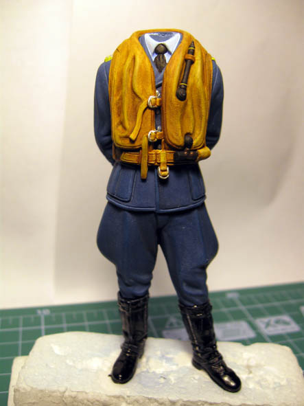 Как мне советывали - аккуратно вырезать с боковушки коробки на выбор одну из четырёх ленточек на рукав кителя лётчика. Потом так же аккуратно отделить собственно картон от тонкой бумаги с напечатанной ленточкой. А затем ленту- приклеить...
