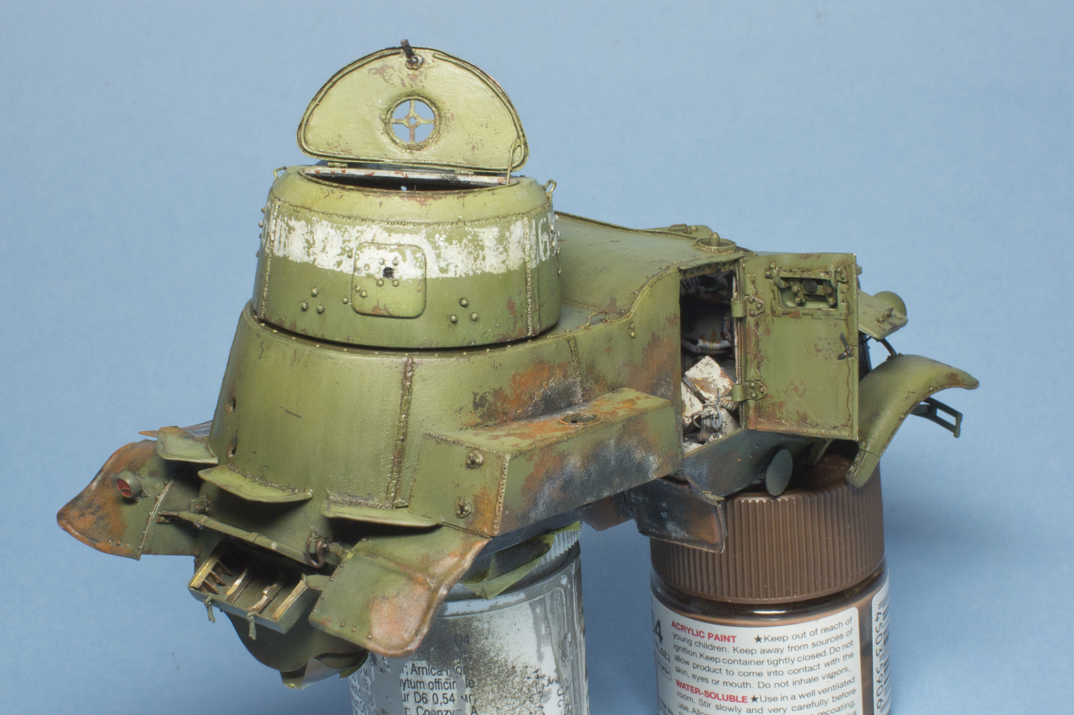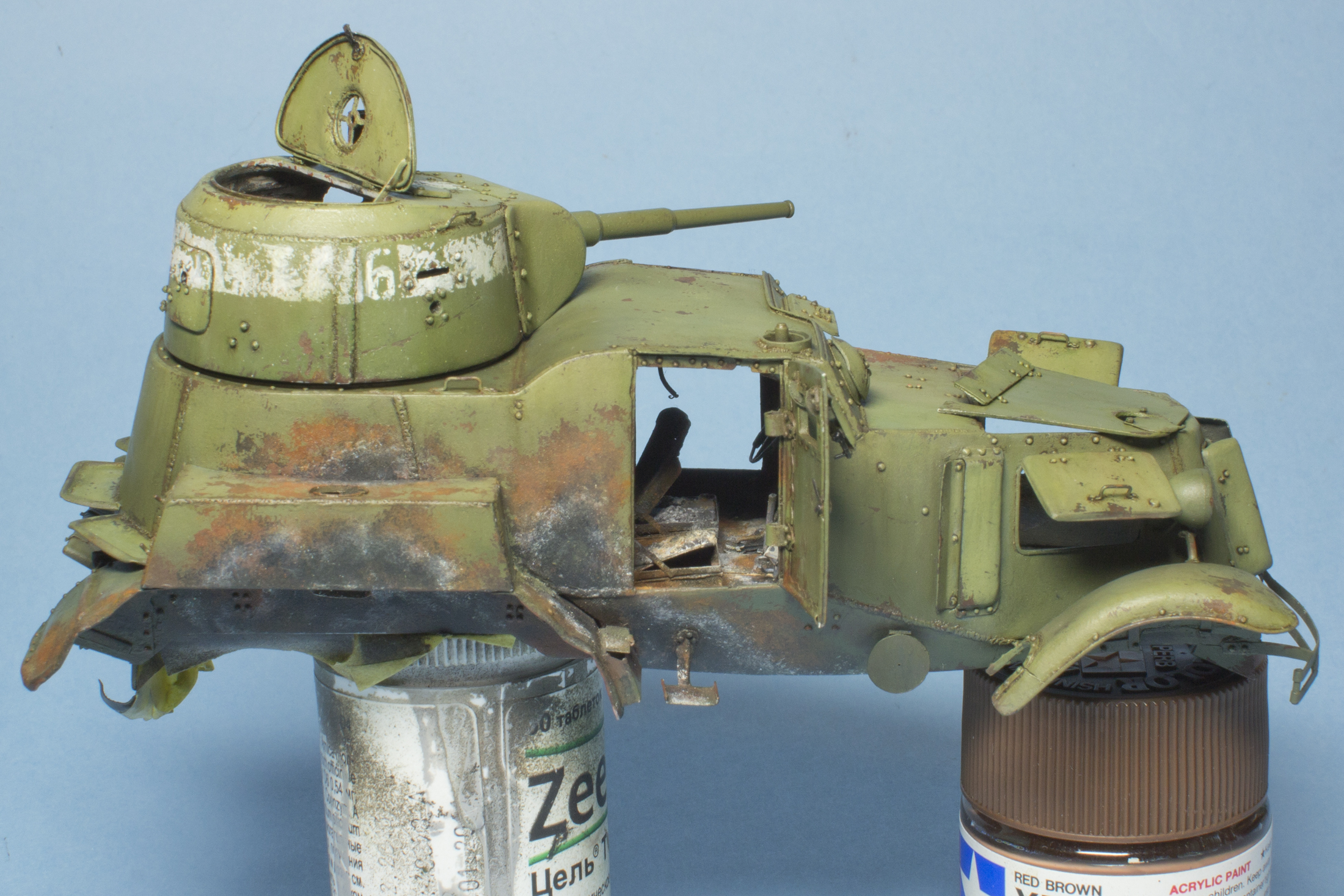 Нашел время и покрасил башню, двери и прочие оторванные части. Пока не все самому нравится - буду еще дорабатывать.