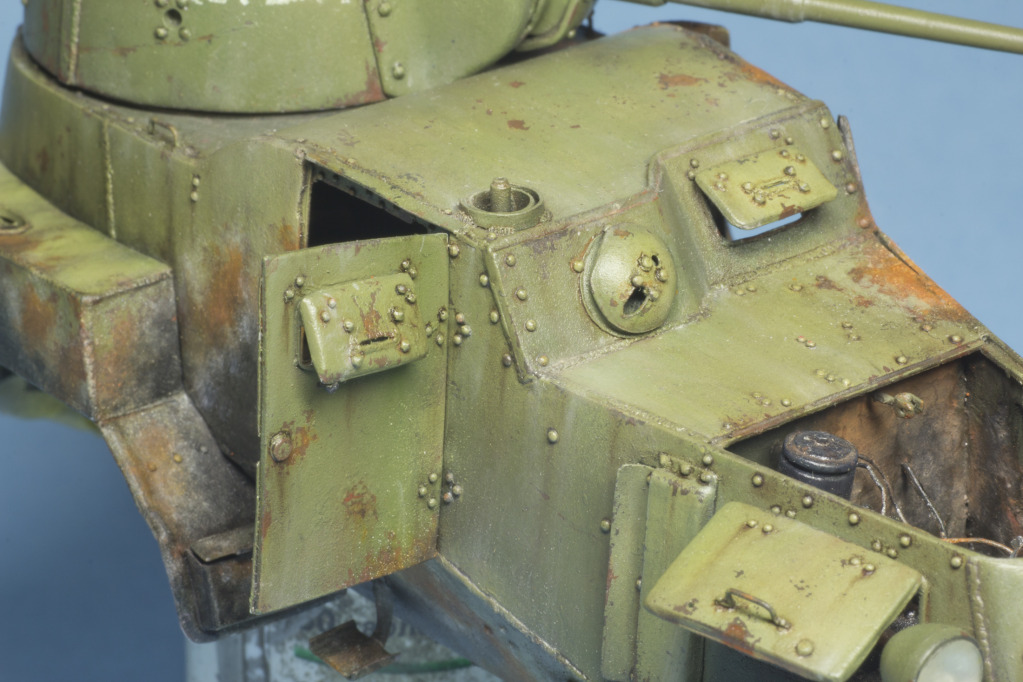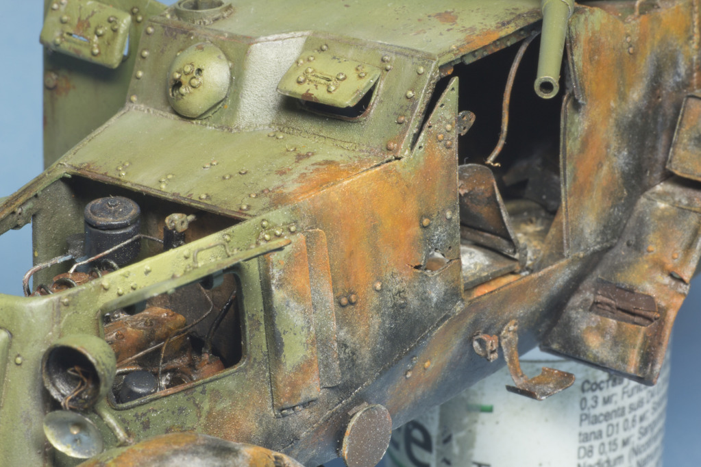 10 отрабатываем маслами оттенки (везеринг по зеленому цвету, и "наращивание оттенков ржавчины в очагах). Я еще использую ржавые смеси от МИГа и АК. Всего получается до 6 различных цветов ржавого цвета...