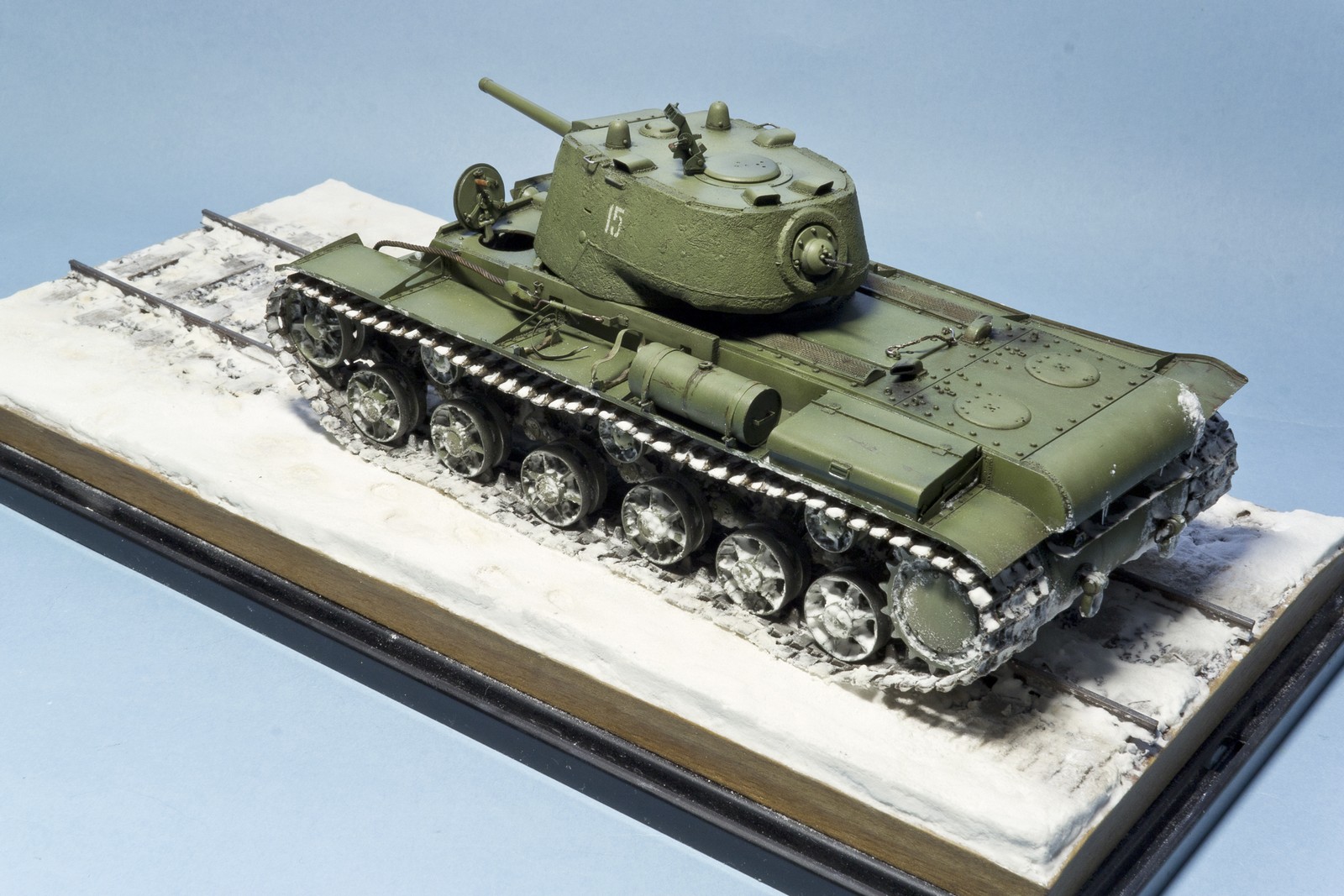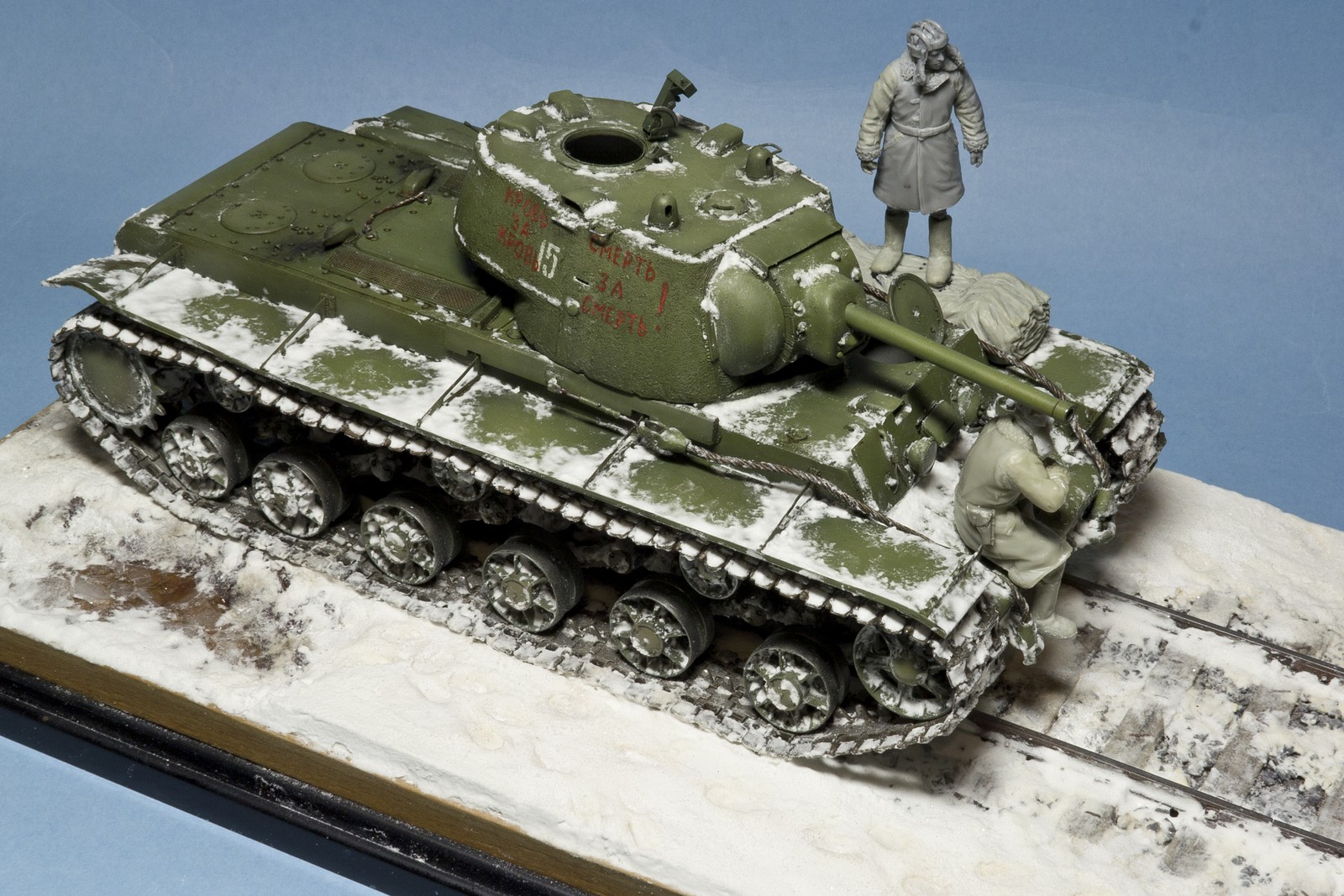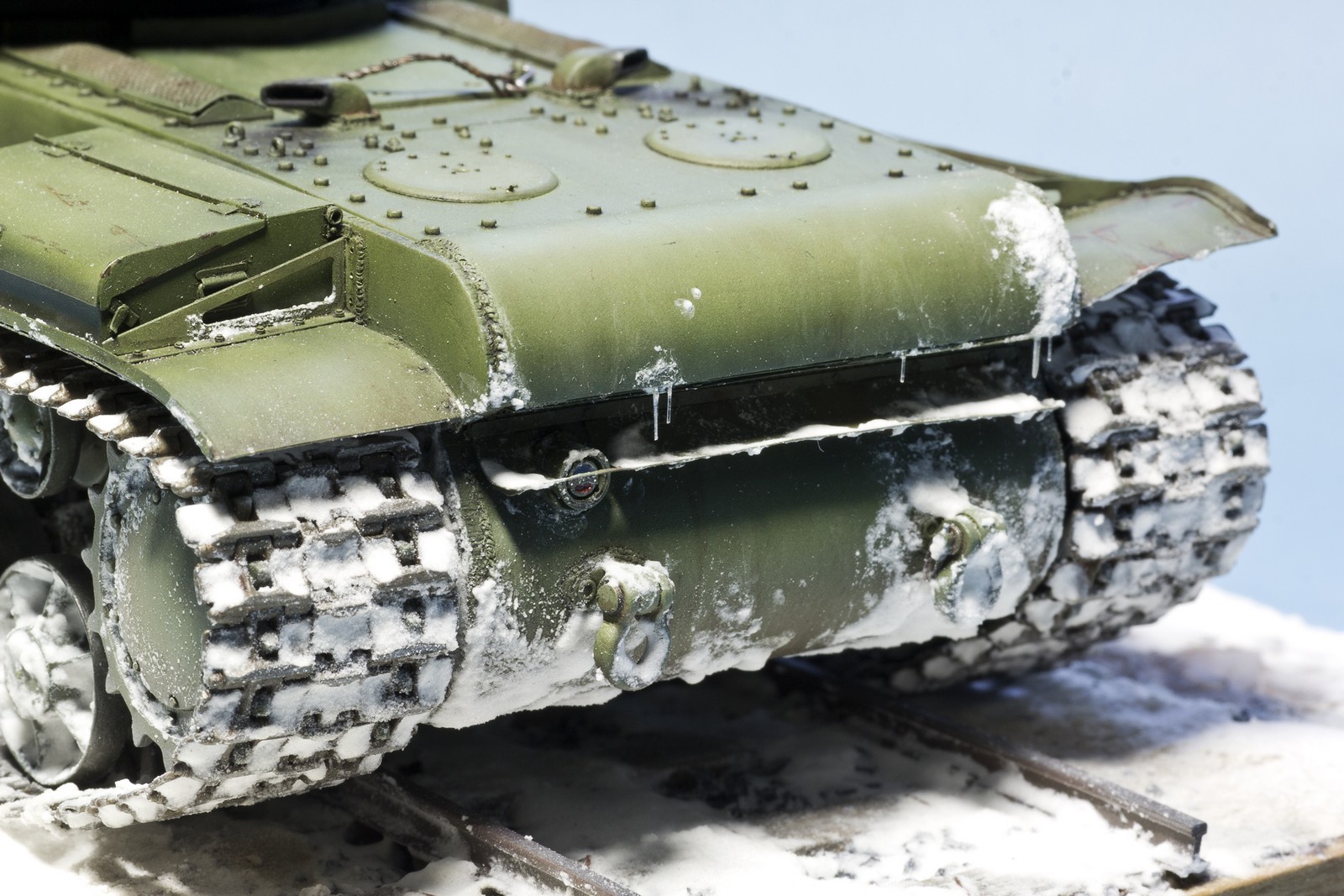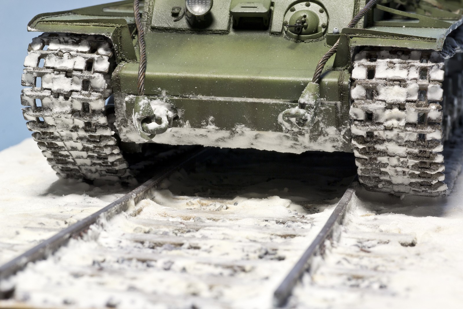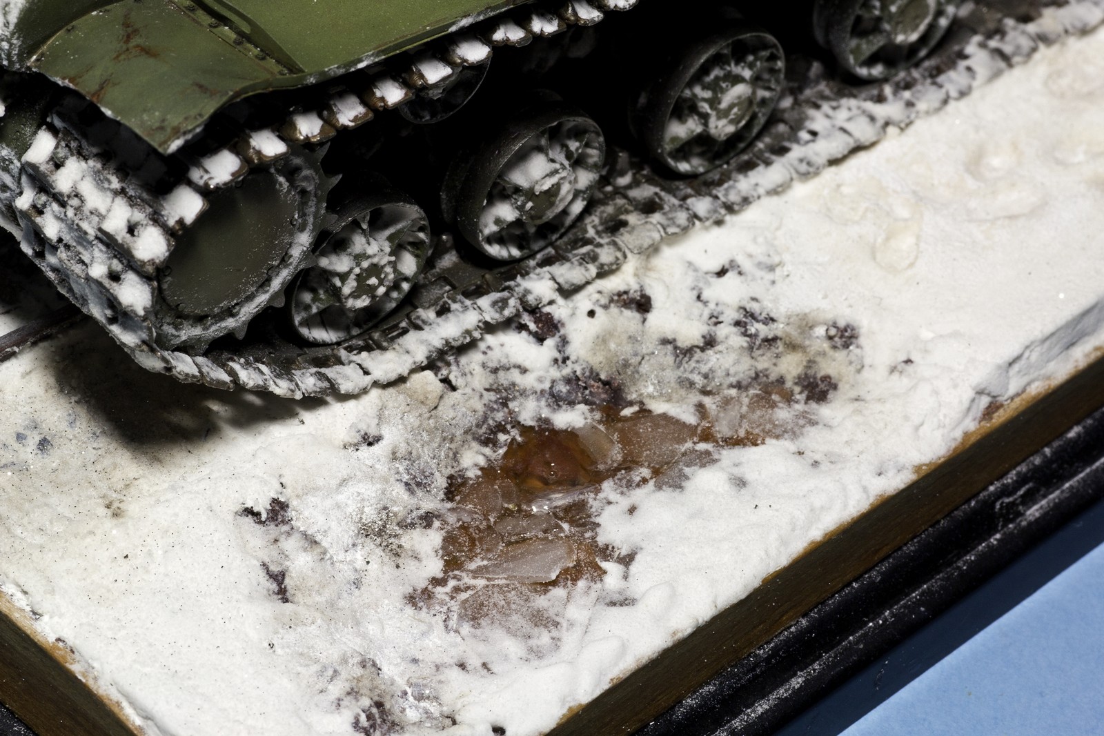 Снег в целом сделал как на подставке, так и на модели. Еще буду дорабатывать отдельные моменты, но в целом танк почти готов.