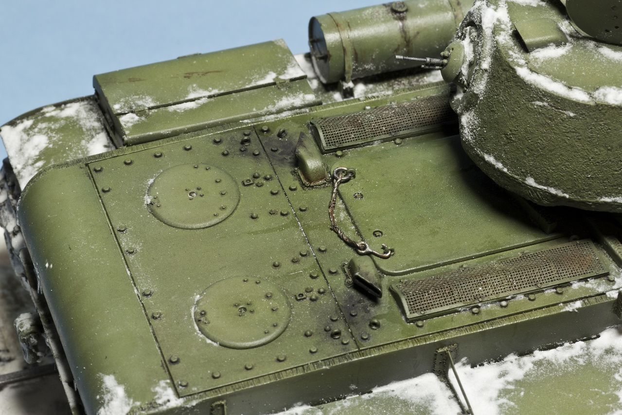 Я бы только ещё снег на ходовой и в особенности на катках бы подправил. Моделисты любят натыкать снег как попало хаотично, но он в морозную зимнюю погоду не НАЛИПАЛ, а НАБИВАЛСЯ во всякие углубления в ходовой. Почувствуйте разницу, на фото это хорошо видно.