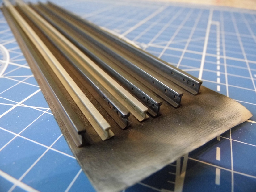 Для изготовления уголков использовал вот такой прозрачный профиль от Тамии. Под сечение 65мм подходит уголок в масштабе 2мм, а у меня 3. Сточил до необходимого размера вот и все... (а у Тамии таких уголков 2 мм помоему нет).