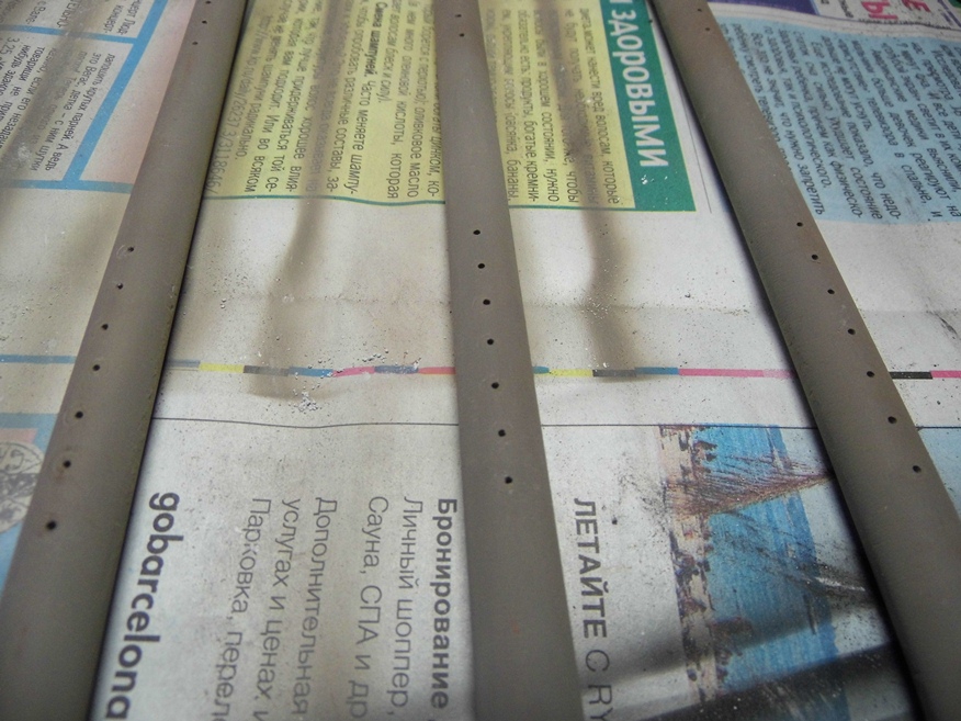 Покрасил кистью акрилом Model Air. Натер ржавым и черным пигментами. Изоляторы покрыл слоем глянцевого акрилового лака "Сонет".