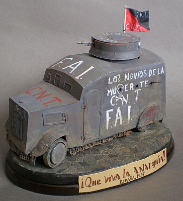 Странный броневик создан в 1936 или 37 году, возможно, в районе близ Валенсии, возможно, на шасси грузовика "Испано-сюиза", есть фото двух таких машин, служили у испанских анархистов из FAI.