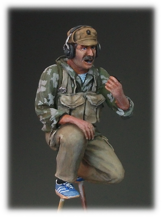 Здравствуйте! Начал попытки "подружиться" с росписью фигурок. Сейчас в процессе "Советский офицер с радиостанцией Р-159. Афганистан" от Мастерклуба, верх вроде закончил, штаны пока только в базовом. Как любому новичку, хочется ваших оценок, советов и "пинков".