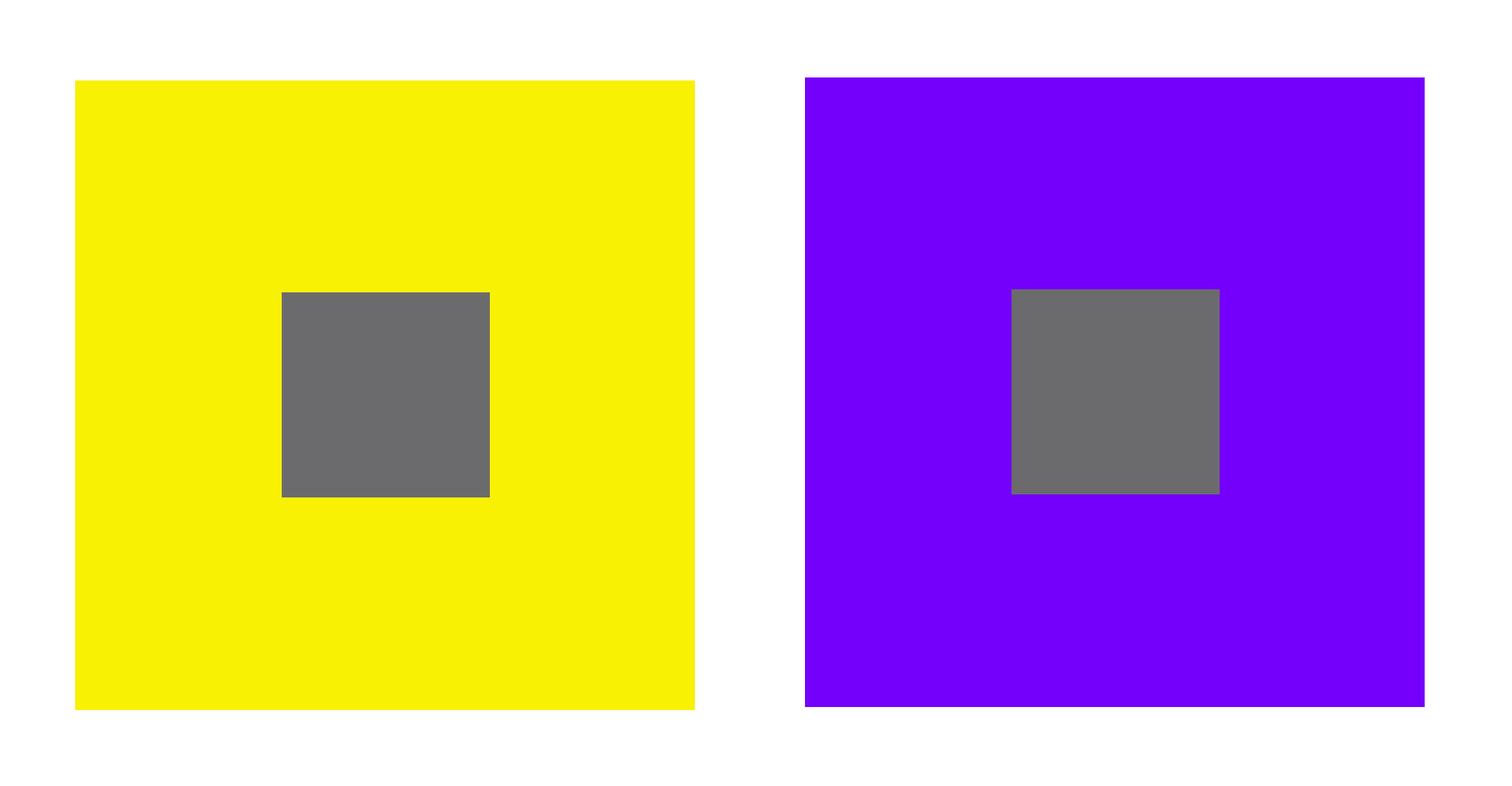 Серый является ахроматическим цветом, и находясь в соседстве с хроматическим цветом, он начинает приобретать оттенок цвета, противоположного по цветовому кругу.В цветовом круге желтый находится против фиолетового, значит серый, помещенный в желтое окружение (как на представленной диораме, много желтовато-песочных тонов в запыленности, основании итд) начинает восприниматься с фиолетовым оттенком (хотя сам этот серый цвет нейтрален, состоит тупо из черного и белого).Вот наглядный пример. Абсолютно одинаковый серый в желтом окружении воспринимается с фиолетовым оттенком, а в фиолетовом окружении-с желтым оттенком. Так уж человеческий глаз устроен.