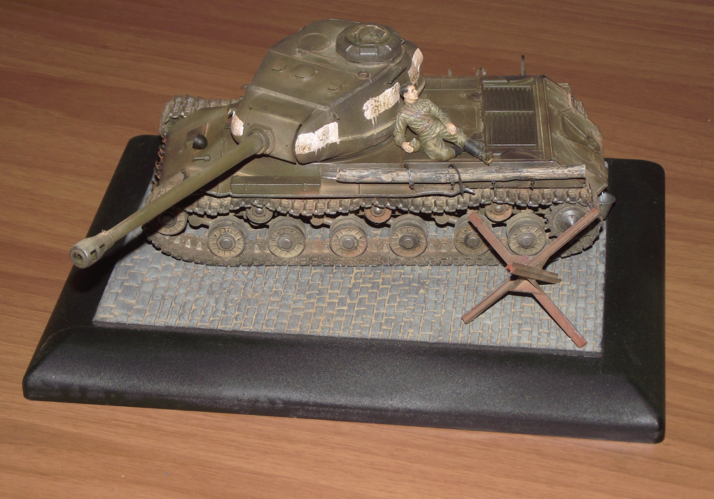 вот прицепи почти танк доделал... но что -то не хватает а не хватает фигур.... хотелось бы изобразить победу.... но с фигурами не могу определится.... может кто что нить посоветует?? Фигура не от сюда просто примерил!