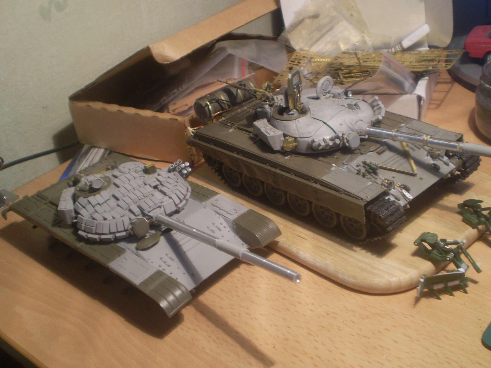 Некоторое время назад сделал по заказу сына (принес уже собранного и сказал "покрась круто") вот такую конверсию набора от "Звезды". Понял, что мелкий масштаб не для меня (длина игрушки 7 см), но получил удовольствие от процесса, да и руку в покраске набил немного