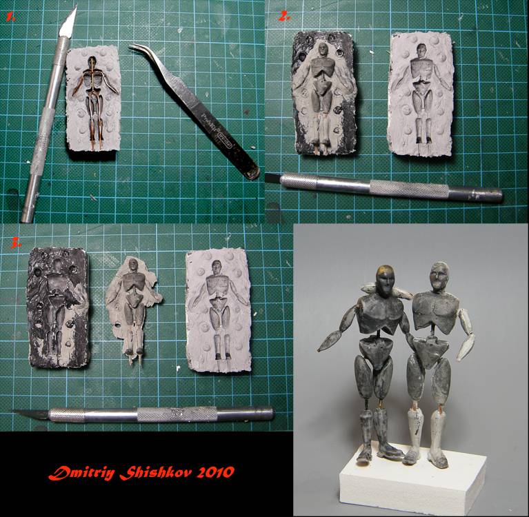 "болванчики" готовы, начал лепить нового бойца,в напарники первому,выставил позу.......