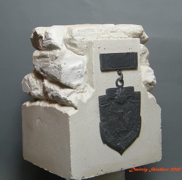 Дмитрий Шишков, тяжеловата для подставки. Получается некая памятникоподобность, это не уместно на мой взгляд для фигурки. Плюс ко всему, светлая и такая массивная подставка будет много на себя "брать", фигура "пропадёт", да ещё учитывая, что боец в чёрной форме. Высокий контраст получается, плохо для восприятия. По тону/цвету, низ всегда должен быть тяжелее верха. Подставка должна быть лаконичной и не броской, желательно тёмных/приглушённых тонов. В общем - извините, но не годится