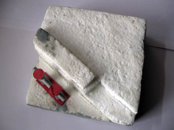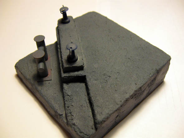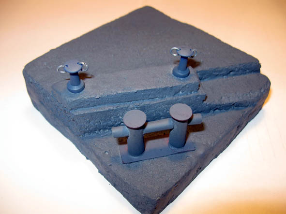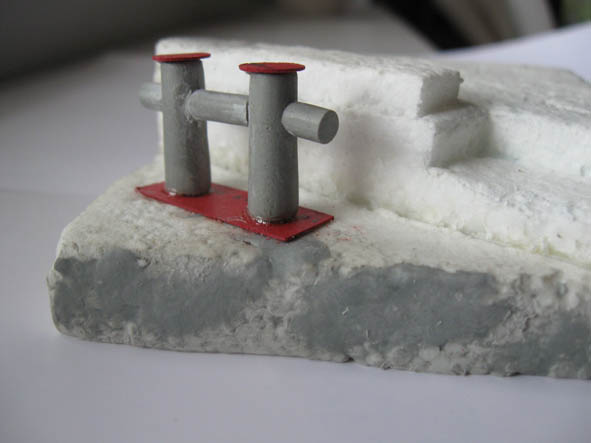 Лирическое отступление- поскольку ни один из грунтов меня не устроил- жжёт и выплавляет пенопласт- было решено задувать акрилом. Был намешан цвет- серо- синий (хотелось сизо-голубой). Поскольку наблюдал на море - бетон -асфальт+ морская вода и солнце делает цвет причала не серым, а именно сизым... Серо- синеватым.