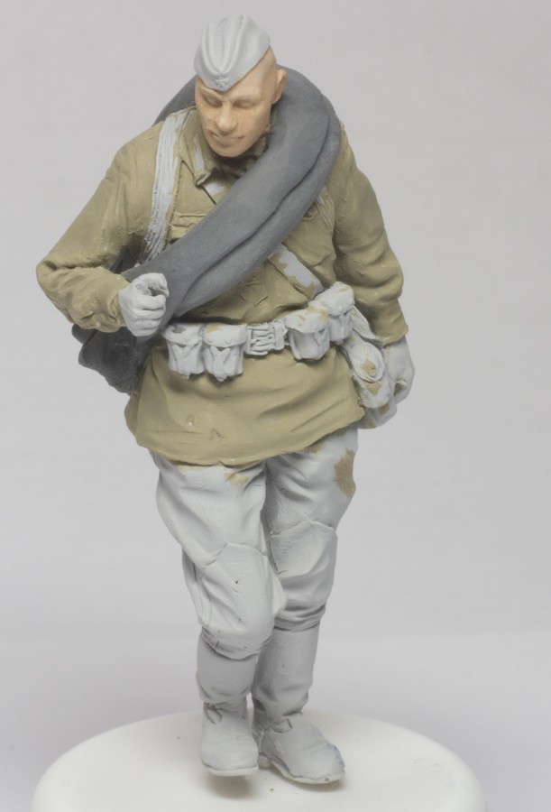 В принципе фигурки собрал, на днях буду грунтовать. У некоторых фигурок повернул головы, зашпаклевал шели и сделанные автором дыры в одежде (которые мне не понравились). С первого раза не получились ремни на оружие - вышли широкие, хотя старался делть по размеру. так что передалал по по второму разу. Вот последний результат