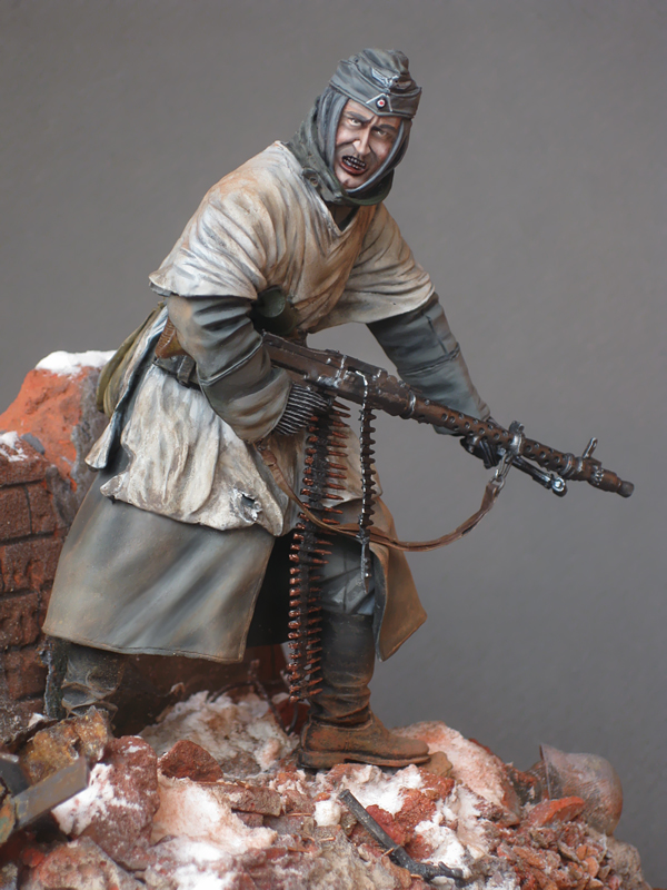 Костяныч! Молодец! Смотрю на твои работы и радуюсь за тебя. С каждой новой работой уровень мастерства только улучшается! Так держать! Теперь вопрос: неужели в 21 веке в 16 масштабе не придумали пулеметную ленту из металла, что бы легла на плечи как настоящая?