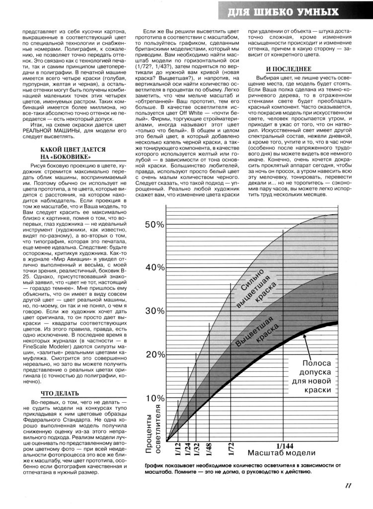 Слегка поддержу тему, касательно масштаба цвета, небольшой статьёй в журнале М-хобби из далекого 1995 года. Основная мысль повествования относится к моделированию бронетехники, но думаю без особого труда можно некоторые тезисы запараллелить и в сторону окраски фигур. Думаю, информация будет полезна, но она ни коим образом не снимает возможные сомнения в части нюансов, оттенков и восприятий, отдельно взятого цвета.